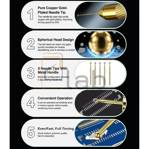 KIT BISTURI CON ASTA IN ALLUMINIO FULL METAL - 5 AGHI DISSALDANTI IN ORO E RAME RIPARAZIONE CPU TO6 RELIFE